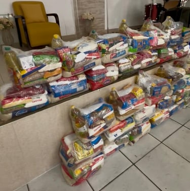 Arrecadamos alimentos não perecíveis para montar cestas básicas, que são entregues a famílias em situação de vulnerabilidade.