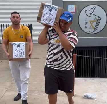 Apoiamos casas de recuperação, levando alimentos, roupas e palavras de esperança.